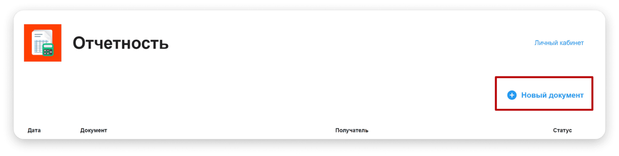 4. Дальше перейдите на вкладку «Отчётность» → «Открыть отчётность» и нажмите кнопку «Новый документ».