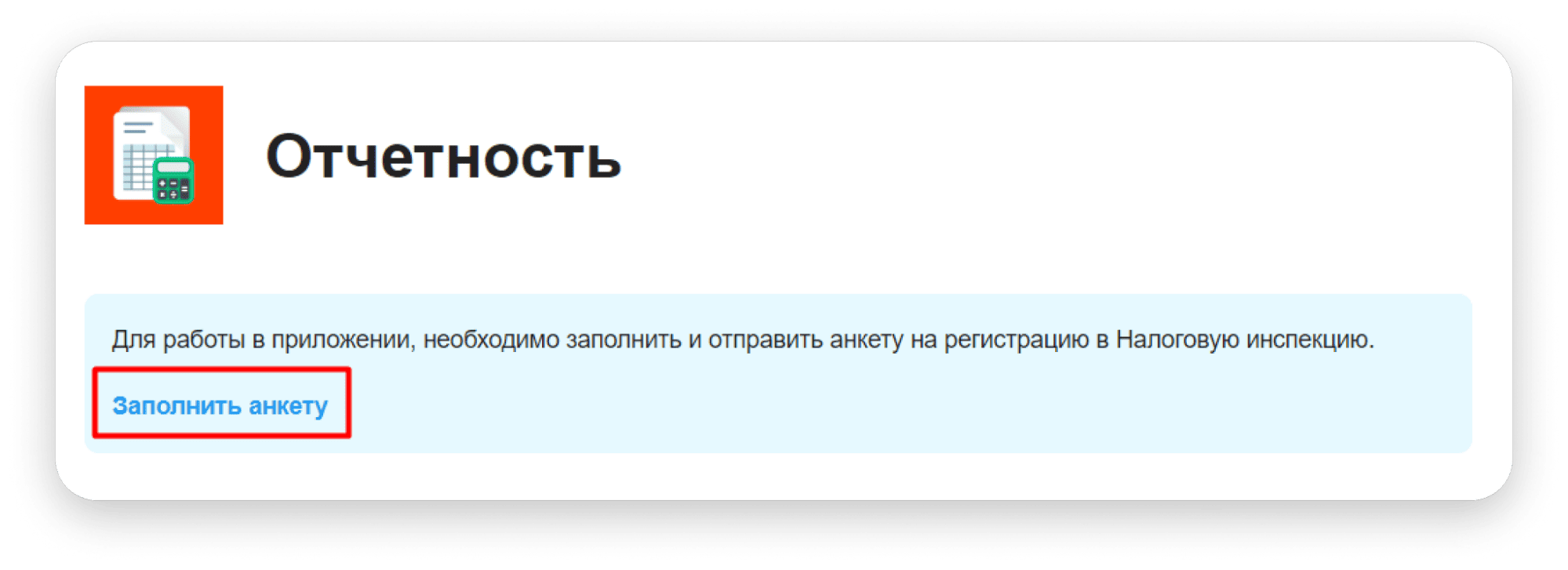 Заходим в раздел отчётность и нажимаем «Заполнить анкету», справа откроется боковая панель.