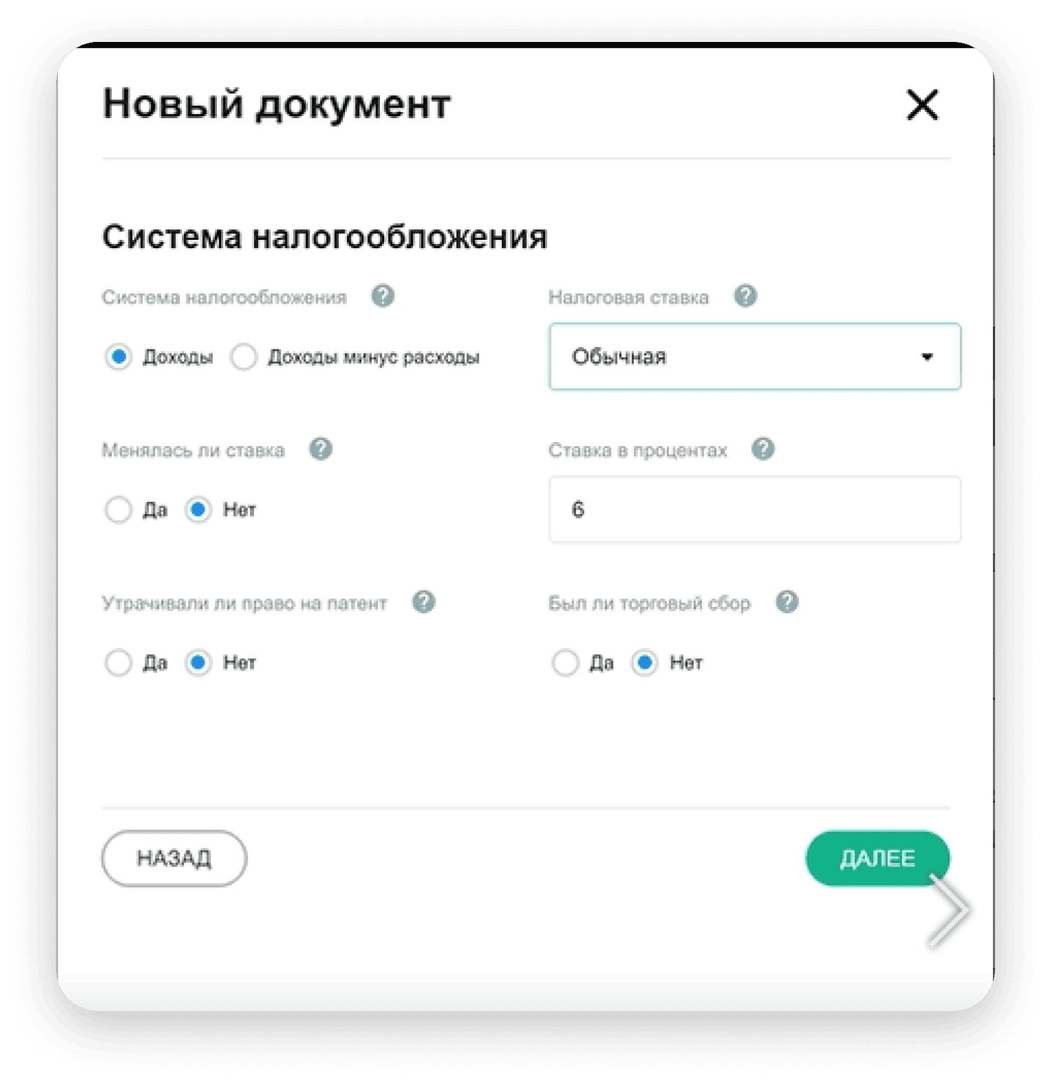 17. Ставка в процентах. Запишите конкретное значение. По умолчанию это 6% для «Доходов» и 15% для «Доходов минус расходы».