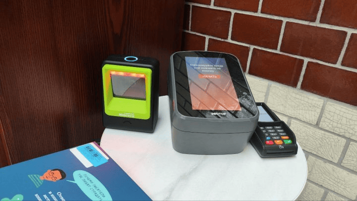 - Сканеры штрихкодов. Обычно их два: стационарный для коробок и бутылок, и ручной — для габаритных или неудобных товаров. Считывают не только штрихкоды, но и QR-коды.